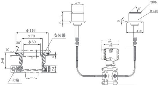 ⑤ DP型雙法蘭液位變送器兩側的毛細管zui大長度為7.5米,兩側長度差為4.5米。